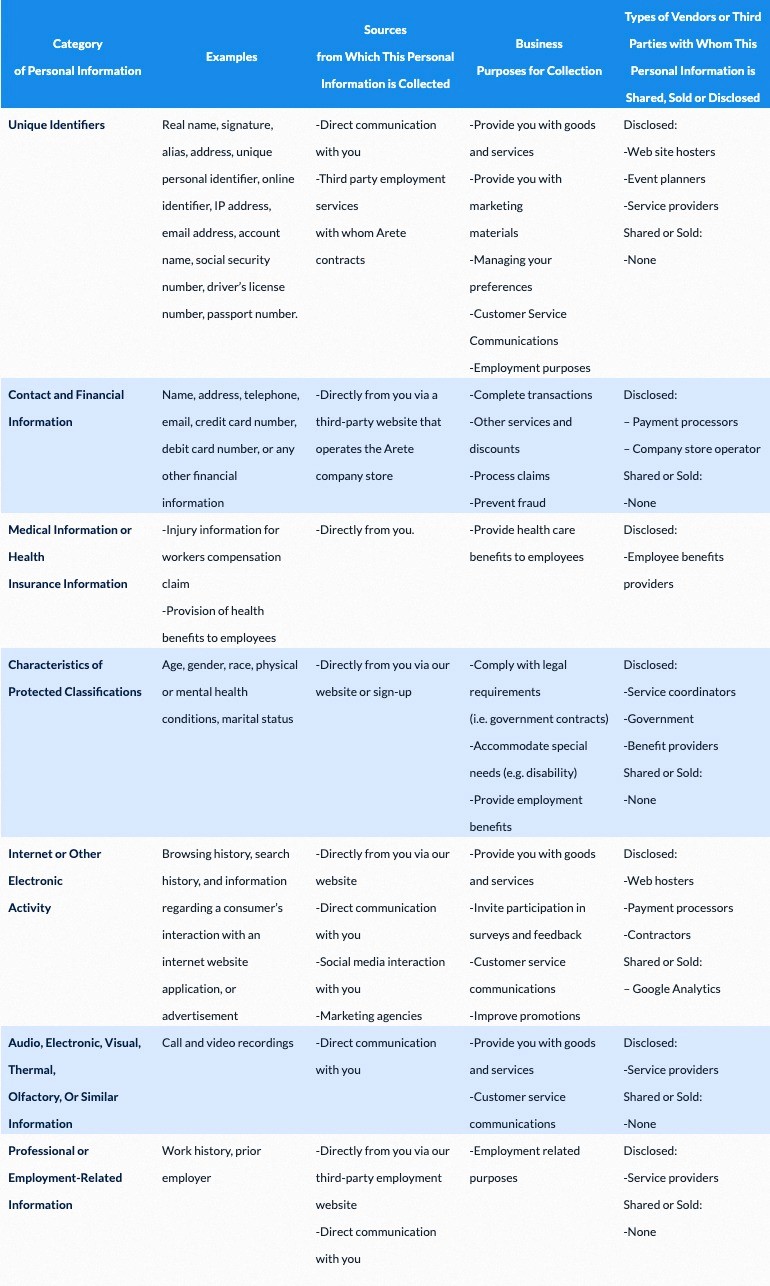 If you are unable to review or access this Supplemental Policy due to a disability, you may contact Arete at privacy@areteir.com to access this Supplemental Policy in an alternative format.