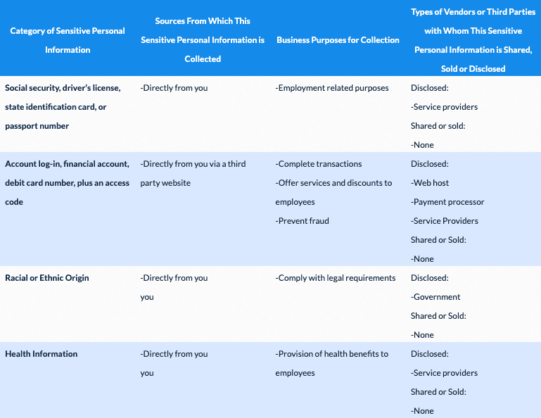 3. Sensitive Personal Information We Collect and Disclose
