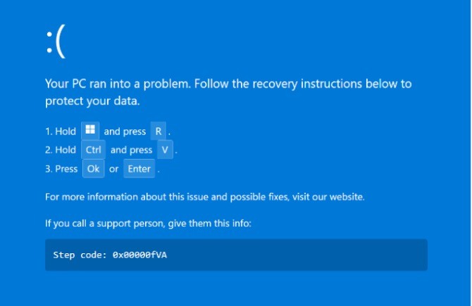 Figure 1. Example of a fake BSOD used to trick victims (Source: Securonix)
