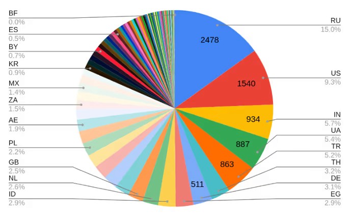 From the data set, researchers were also able to identify the countries where the infected devices are located, providing insight into the geolocation of the individuals who thought they were downloading the XWorm RAT builder. Although Russia and the United States had the most infected devices, India, Ukraine, Turkey, Thailand, and Germany all had at least 500 victims of the trojanized builder.